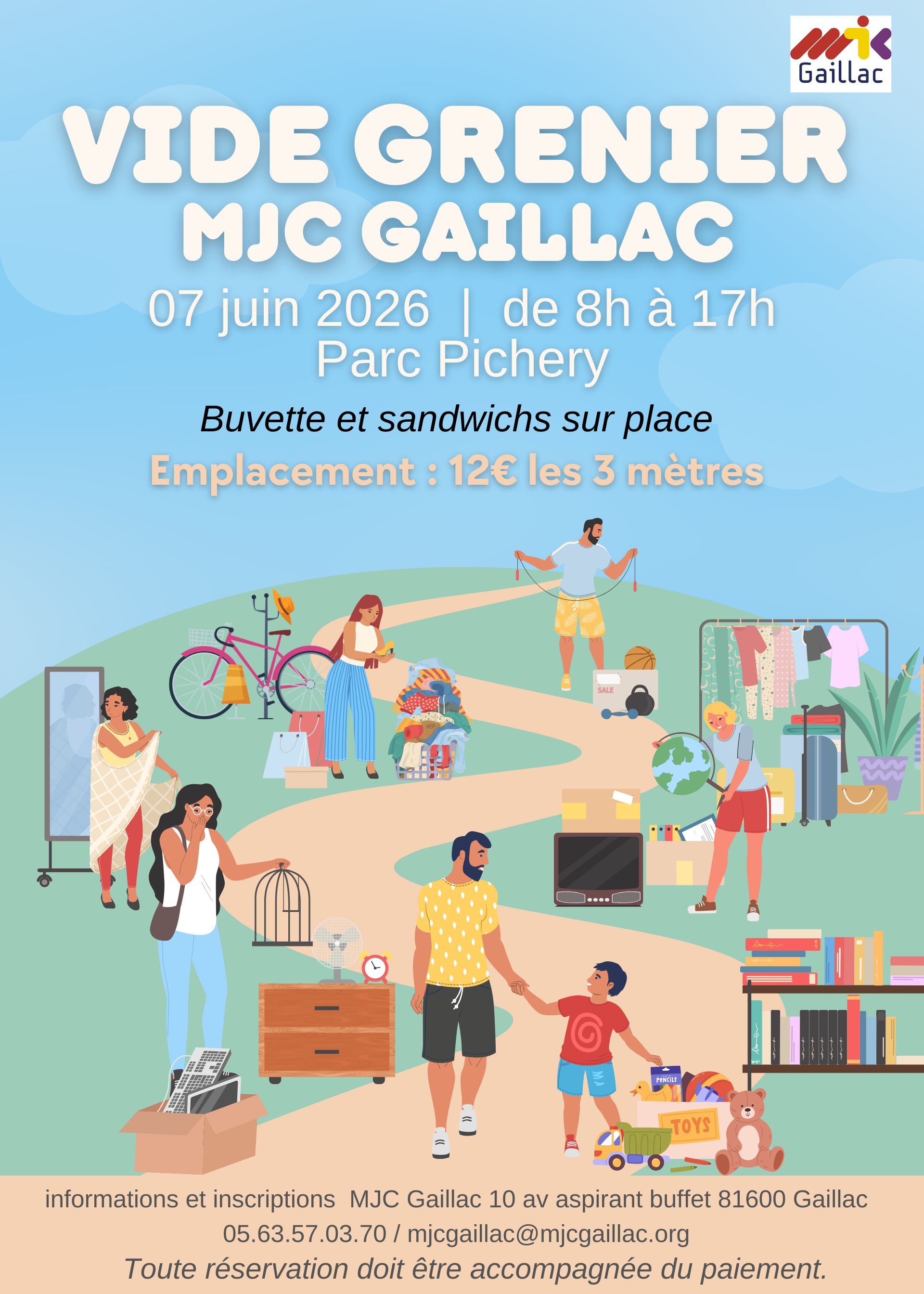 Inscription possible (réservation emplacement et règlement) > Uniquement à l'accueil de la MJC les après-midi de 14h à 18h