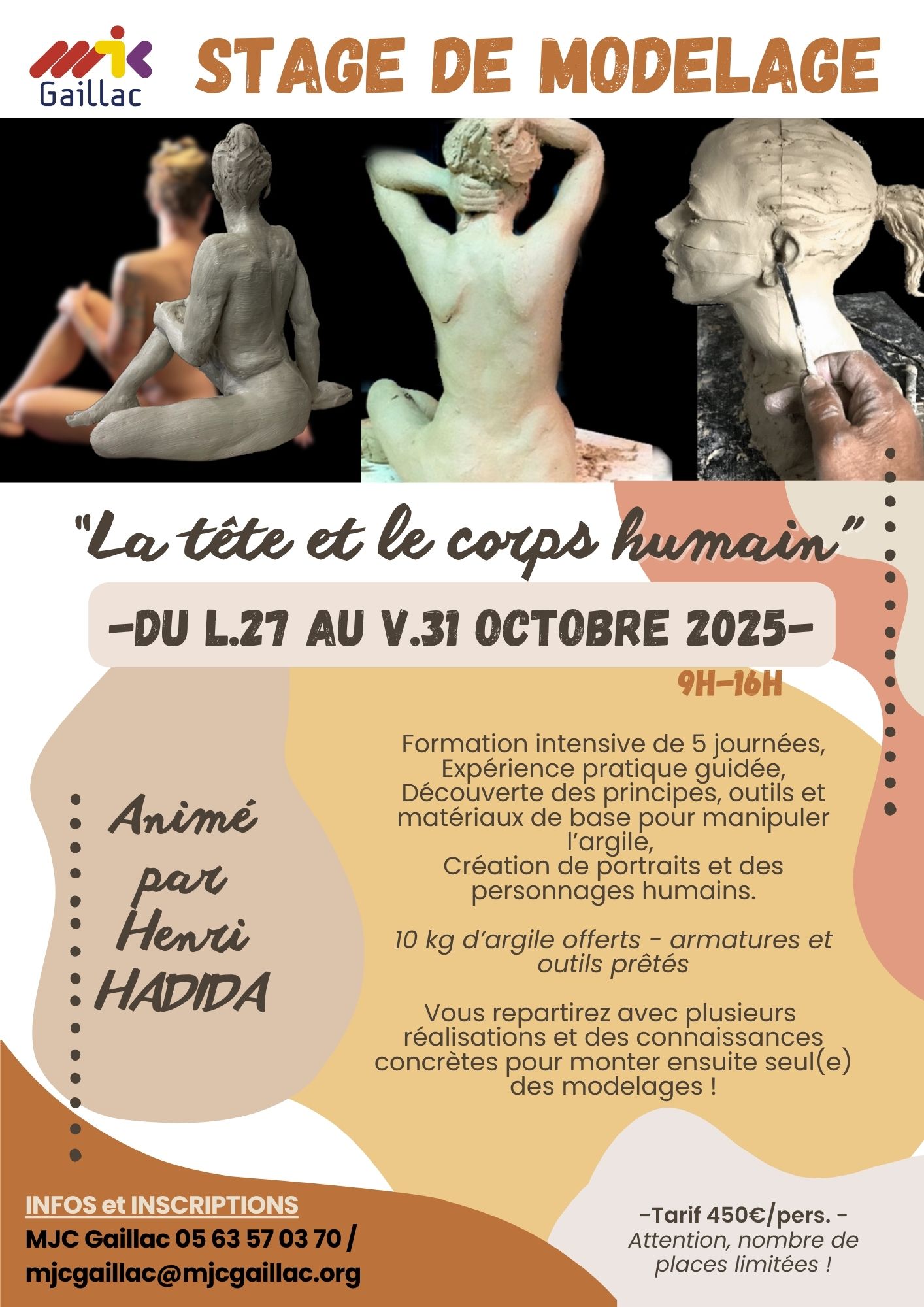 Une formation intensive de 5 journées, une expérience pratique guidée, une découverte des principes, outils et matériaux de base pour manipuler l’argile, la création de portraits et des personnages humains. Vous repartirez avec plusieurs réalisations et des connaissances concrètes pour monter ensuite seul(e) des modelages !