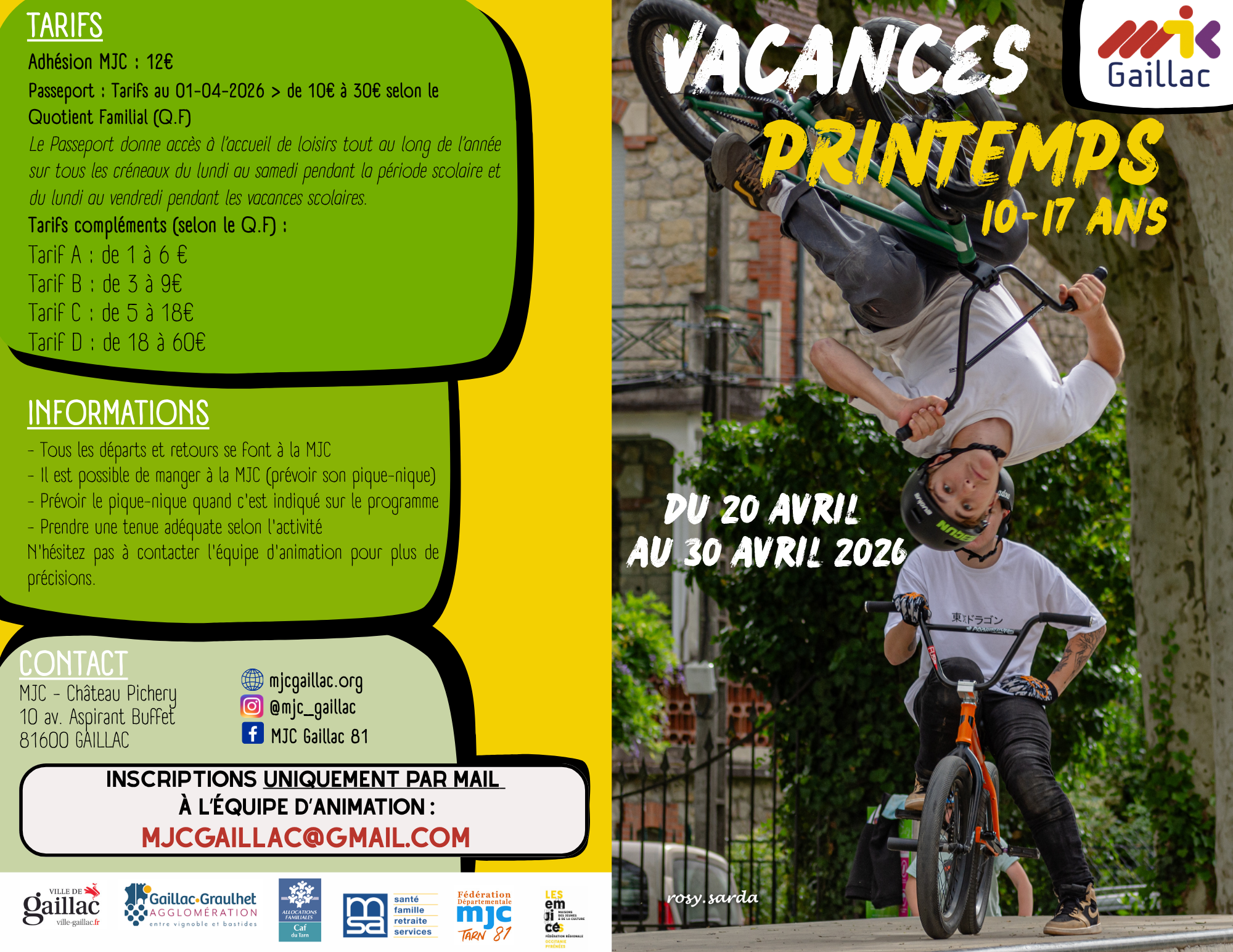 Stages musique, radio, danse, science, photo, BMX, roller, skate, cuisine, pêche…