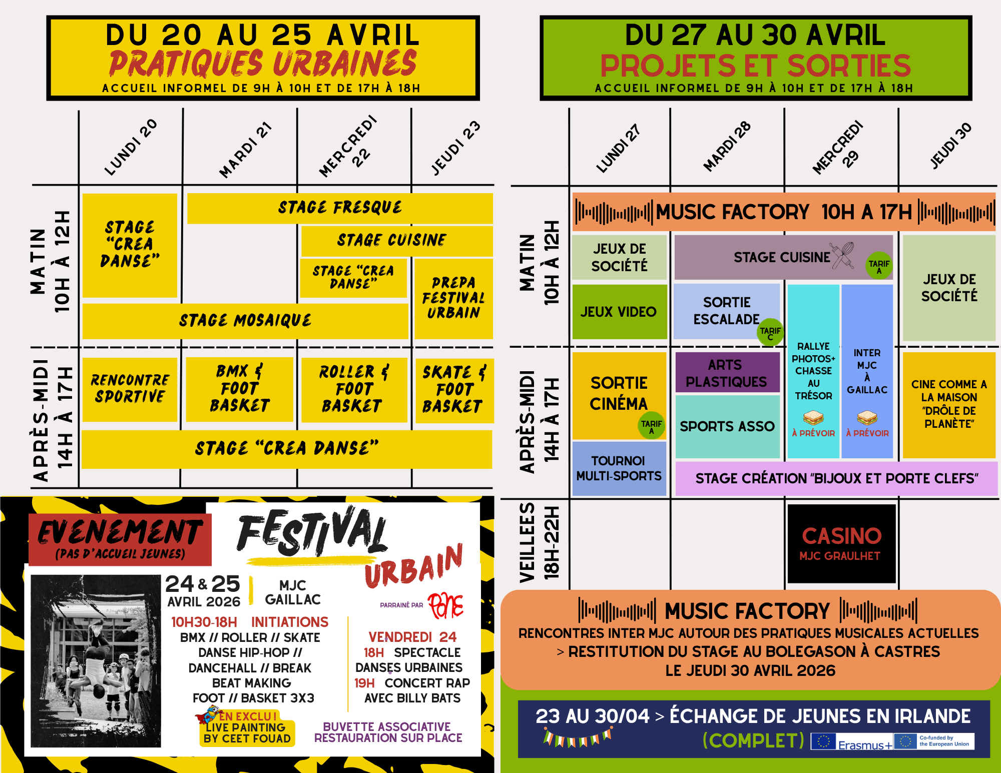 Du lundi au vendredi, de 9h à 18h, pour chaque période de vacances (sauf Noël), l’équipe d’animation met en place une programmation…