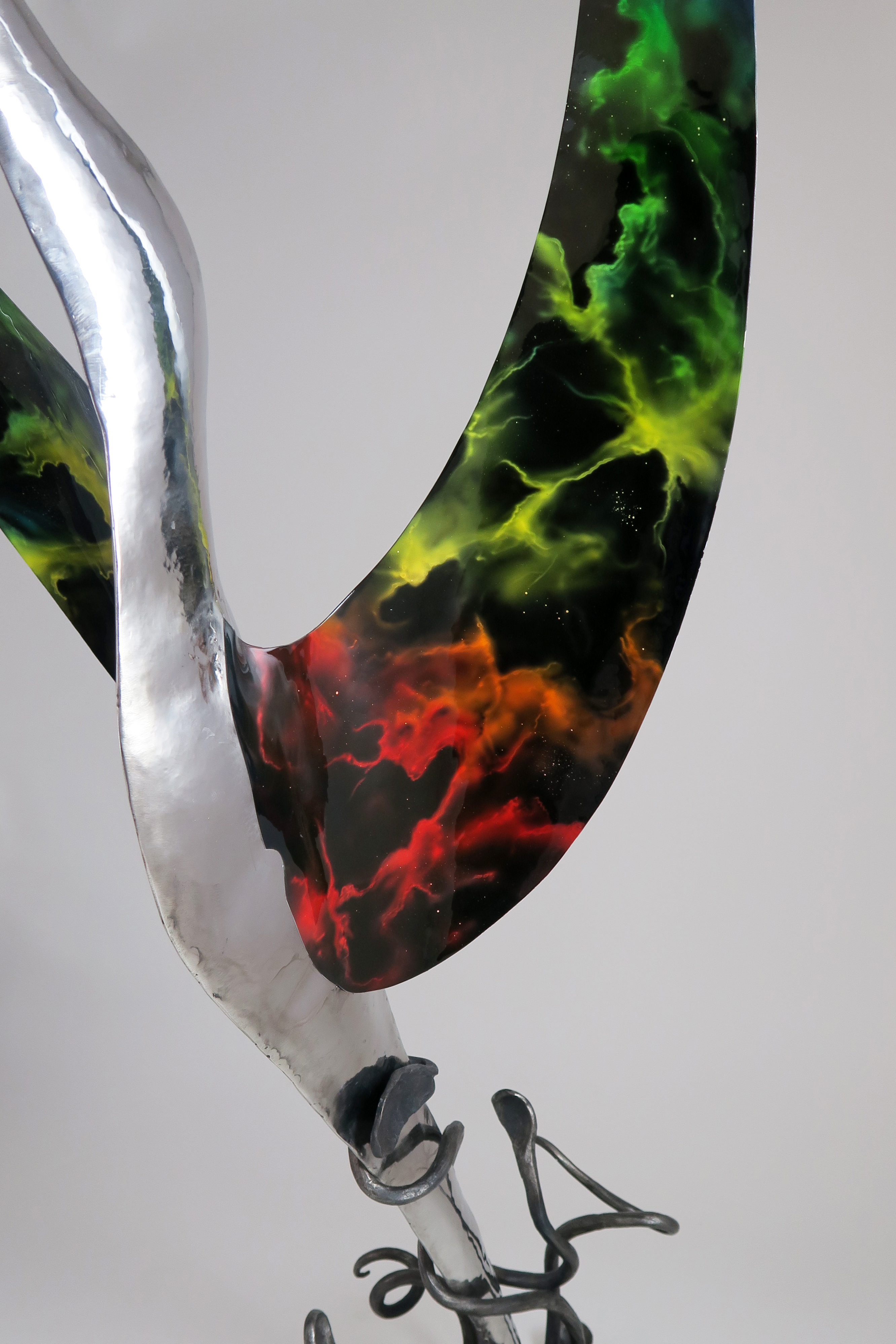 Frédéric Rouanet, gaillacois d'adoption depuis 2017, est un artiste "touche-à-tout" qui a trouvé une voie particulière dans la sculpture du métal, qu'il modèle, structure, façonne, forge, soude... et associe à d'autres matières comme le bois, le verre, la pierre, pour lui donner formes et mouvement, de manière abstraite tout autant que figurative, symbolique ou non, mais qui interpelle toujours le spectateur.